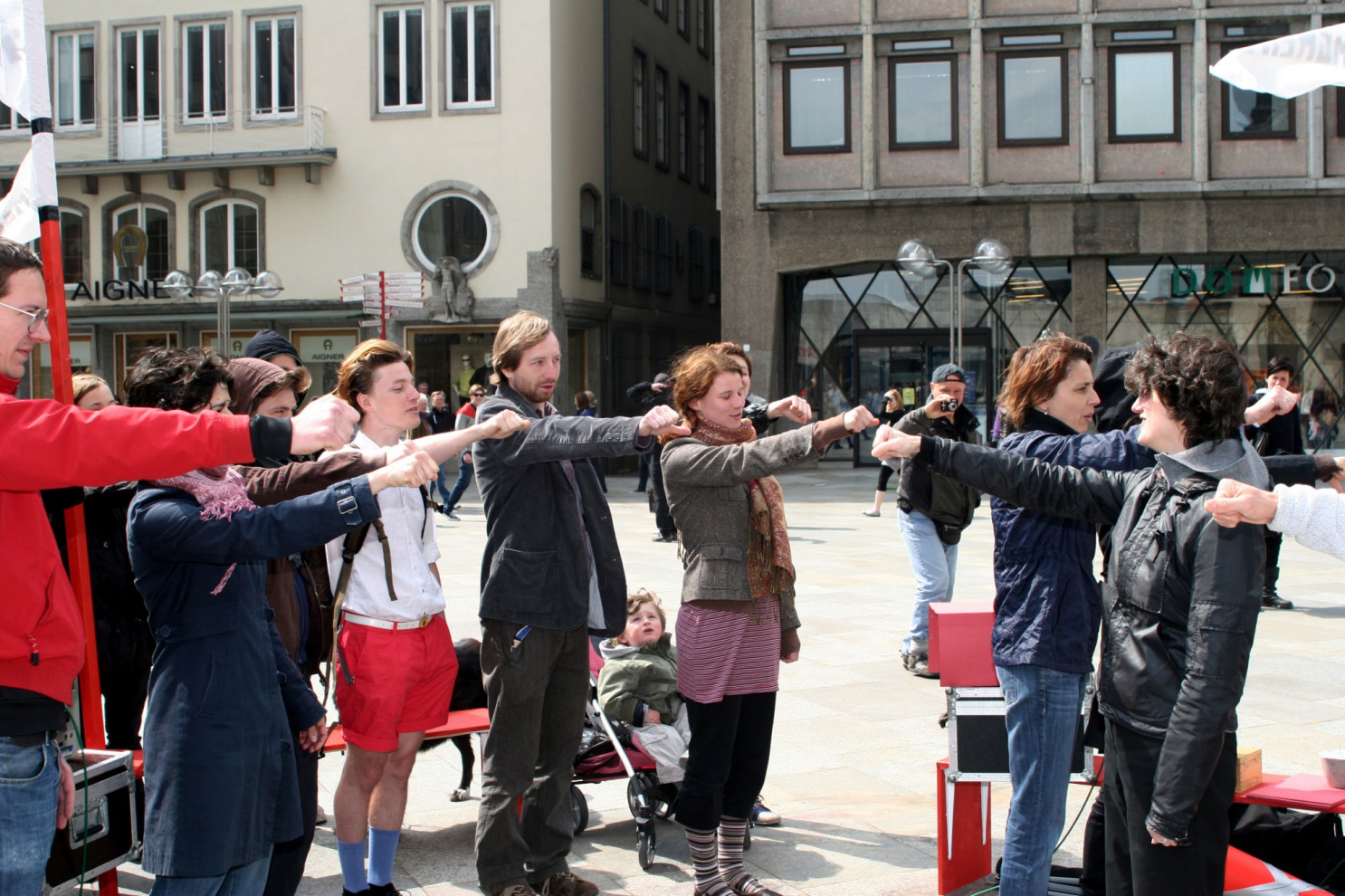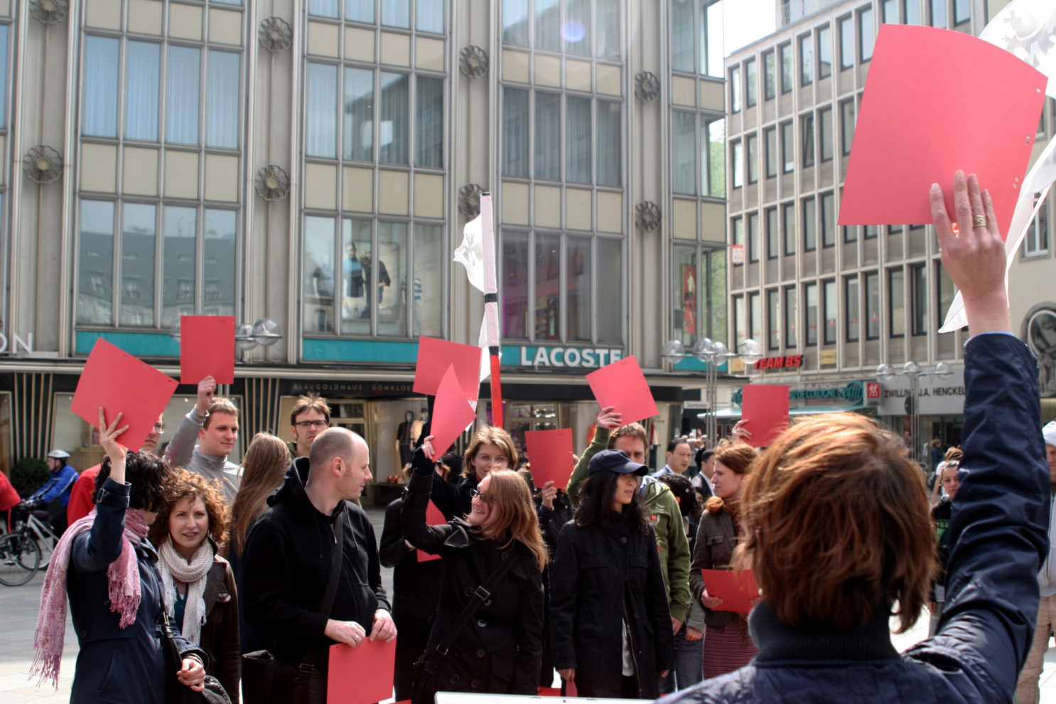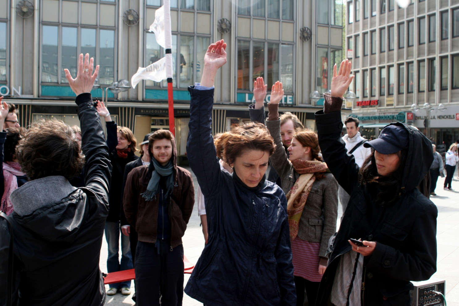 public action including the performance Dummy Variables for raumgreifen! and ART Cologne, @Domplatte Cologne.